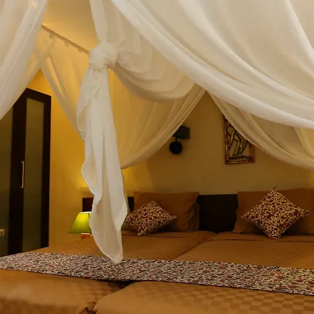 Vanaf deze gelegen in Sanur Beach wijk villa is Serangan schildpaddeneiland opminder dan 6 km afstand. Zowel een privé badkamer als een kitchenette met een magnetron, een grote koelkast en keukengerei zullen er ter beschikking van de gasten worden gesteld.